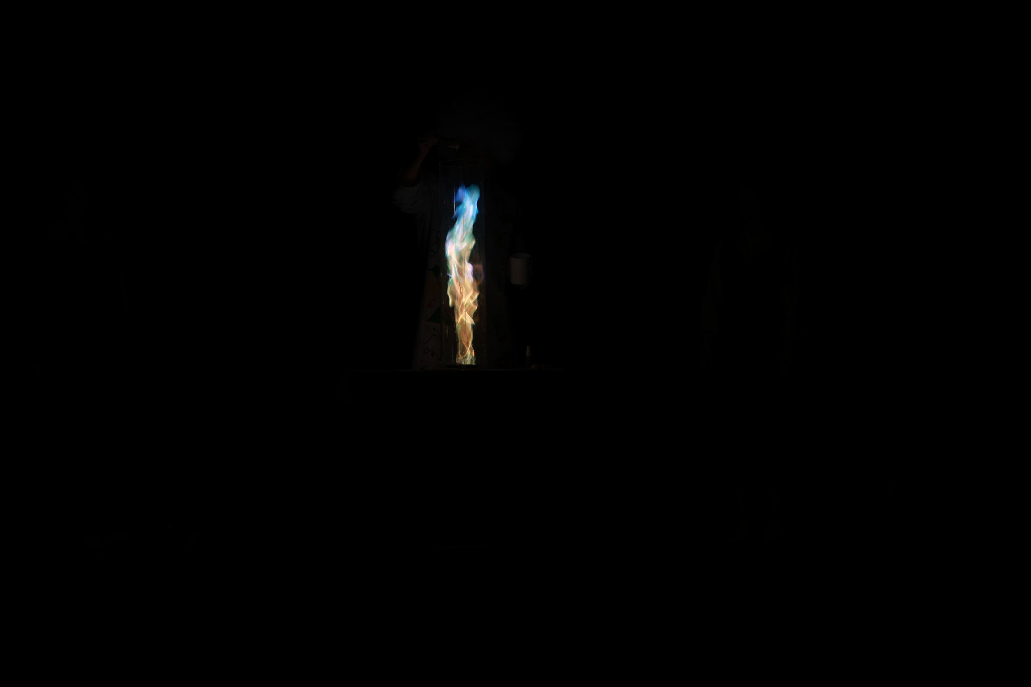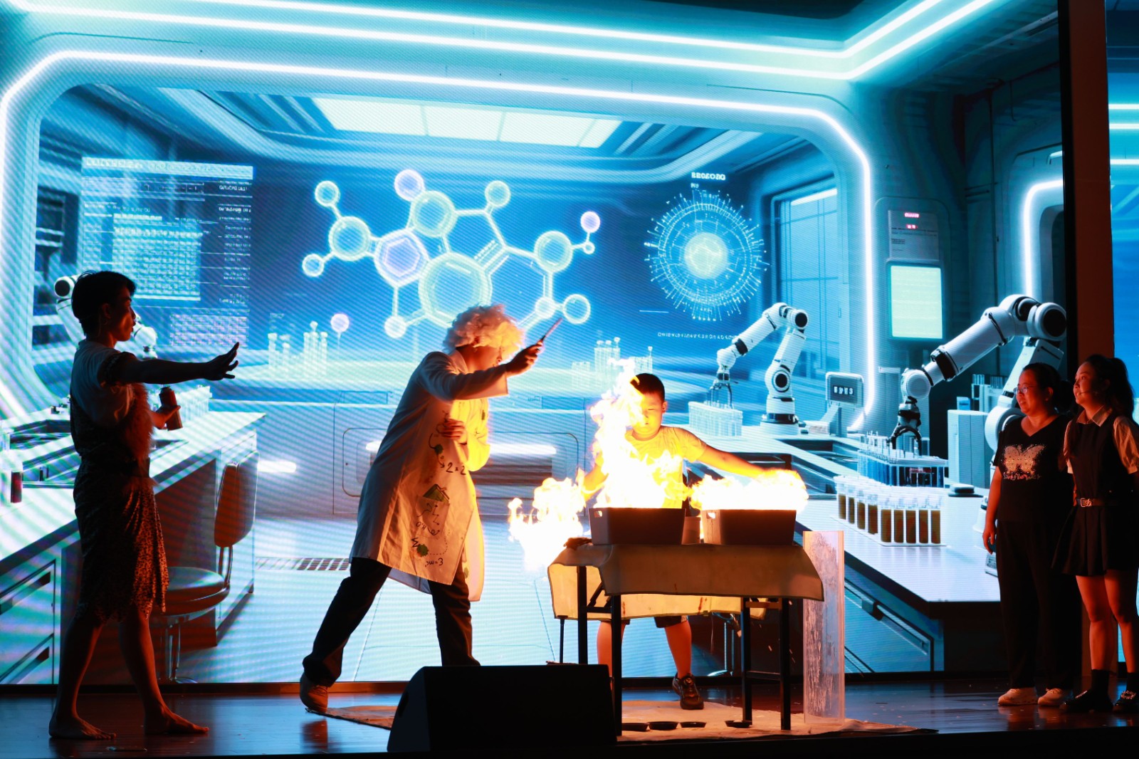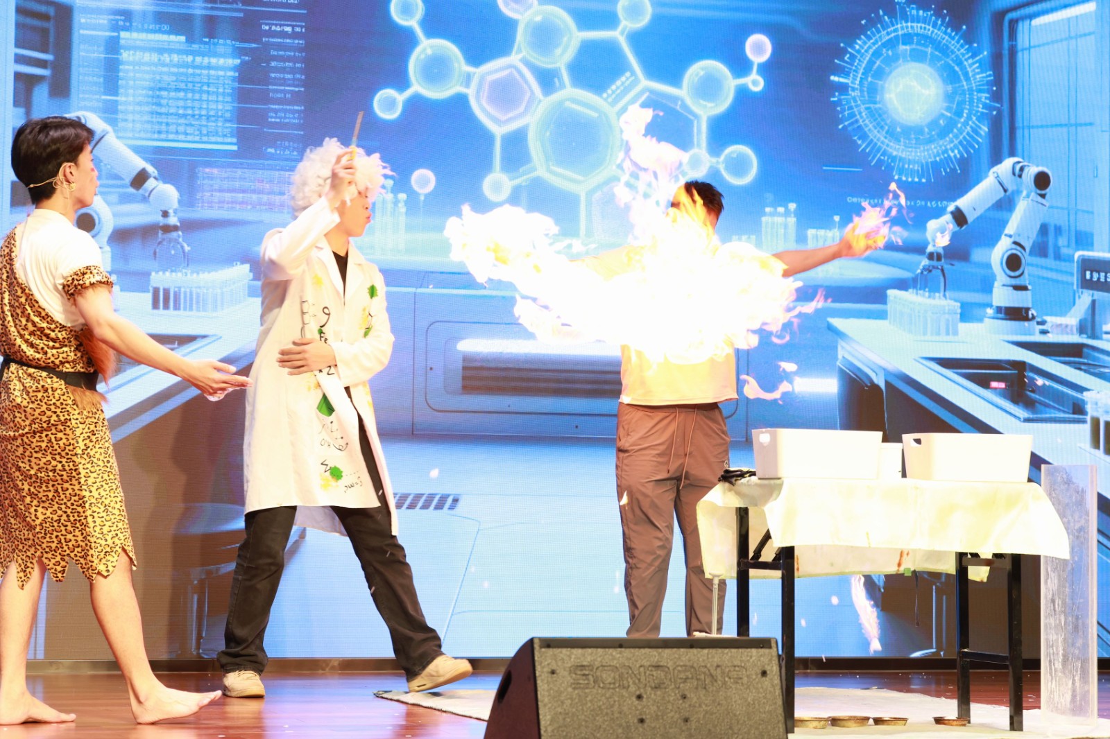 为山东省科技馆策划物理实验秀“冬日焰火”“冬日焰火”是一场科学实验秀,乌拉拉为撰写毕业报告,随杉东博士穿越原始森林,见证燧人氏取火。在实验室体验火焰掌、焰色反应等实验。面粉爆炸的实验让她意识到火的危险。最终在火箭体验馆,乌拉拉明白火是把双刃剑,总结用火安全知识完成自己的毕业课题 。